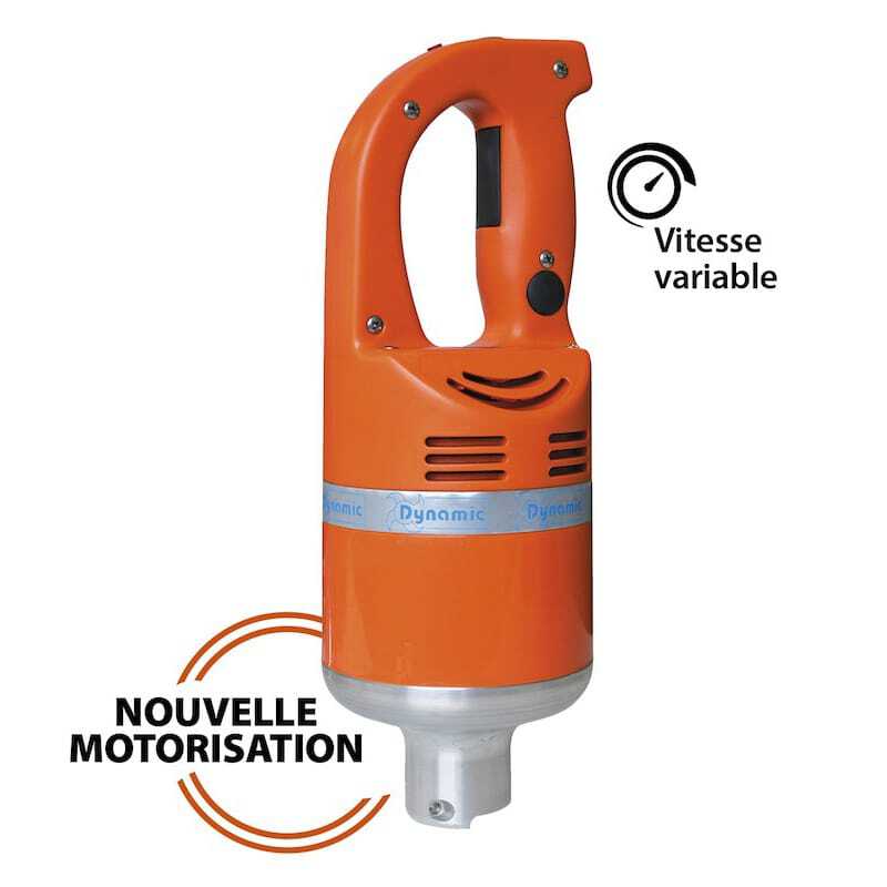 The Dynashake pack includes a Dynashake (Dynamix with waterproof skirt) equipped with a standard 2-blade knife + 4-blade emulsifier knife + beater disc + emulsifier disc + 1-liter graduated bowl with lid.