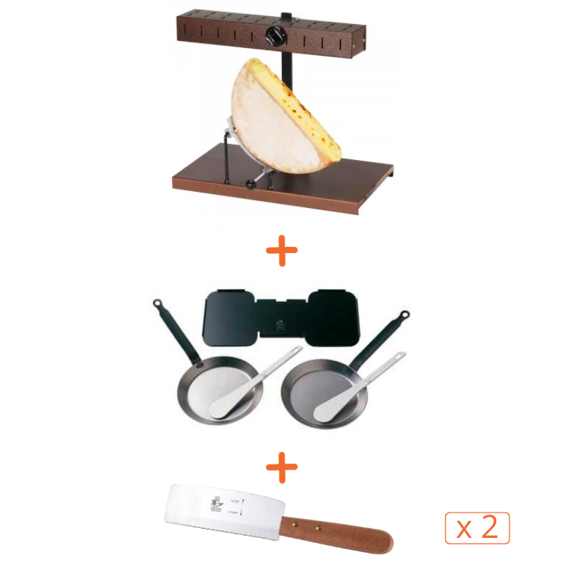 This pack is therefore perfectly suited to the needs of professionals looking to enhance their culinary offerings with equipment that is both aesthetic and functional. The combination of these high-quality devices and knives ensures impeccable performance and maximum culinary satisfaction for customers who love raclette and conviviality. The ideal choice for restaurants aiming to stand out with the quality of their mountain cuisine.